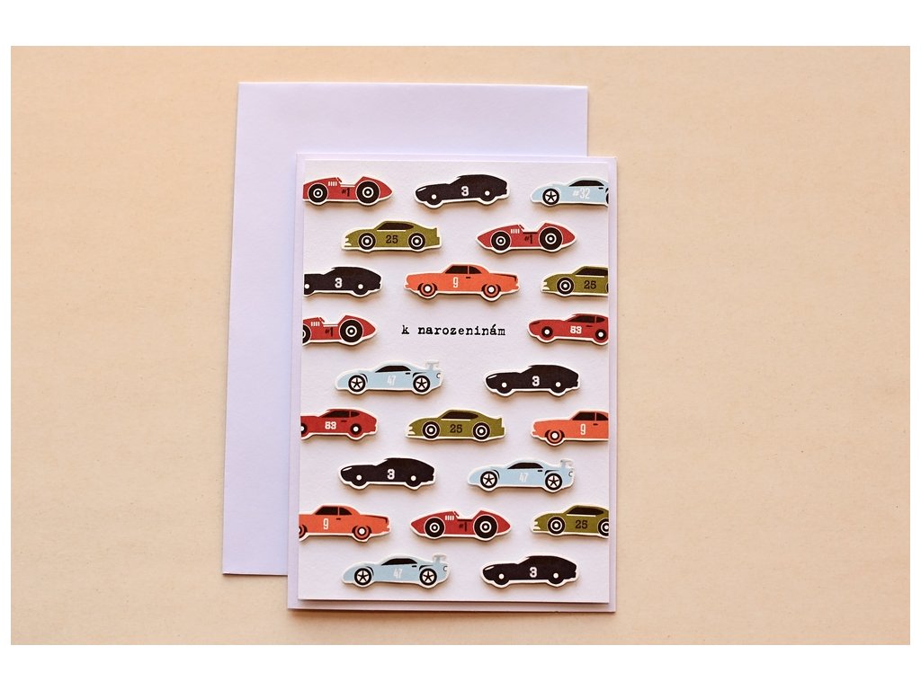 3D narozeninová přáníčka pro malé i velké kluky s autíčky. Více variant.
