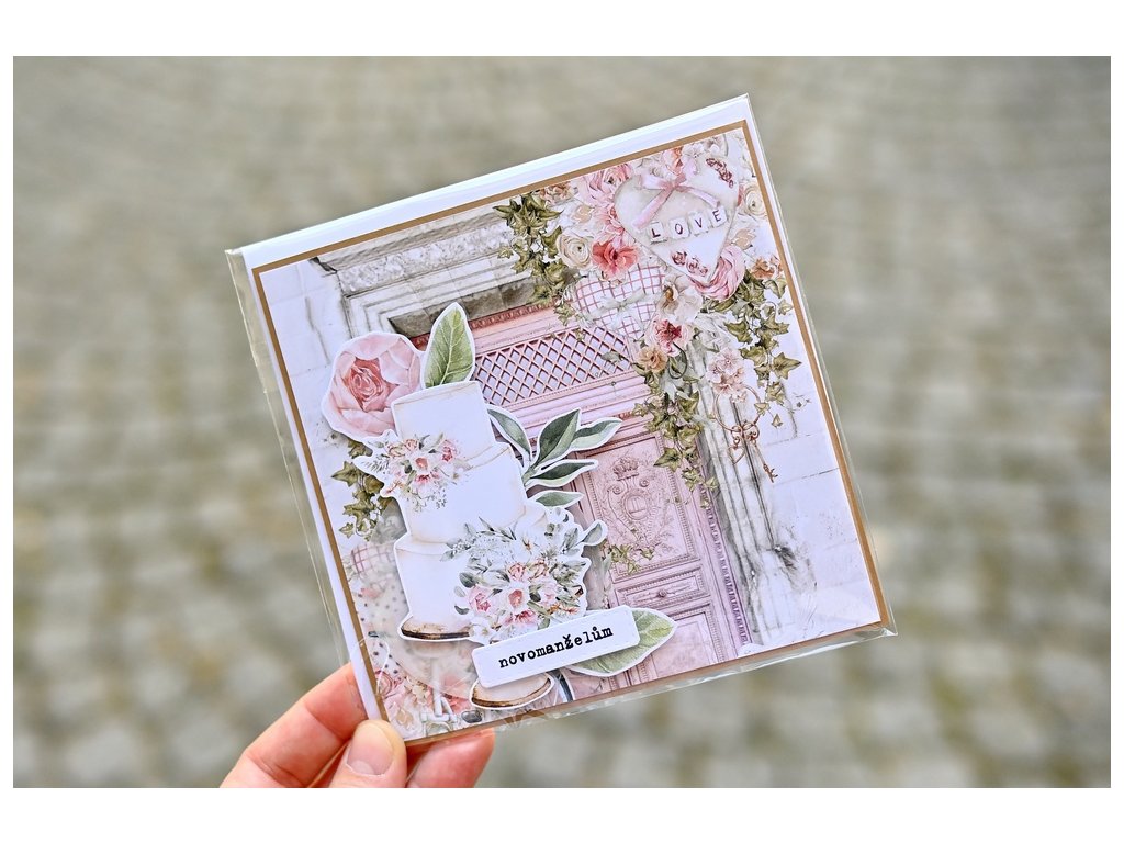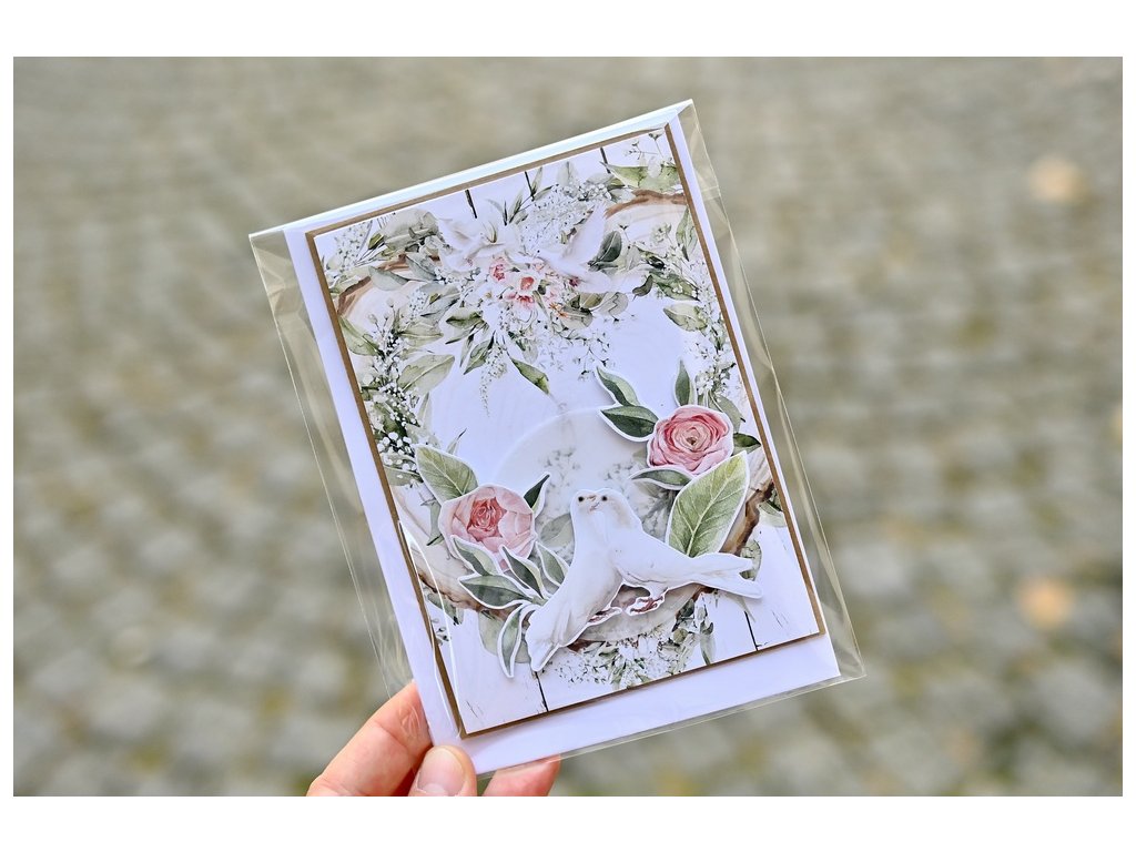 3D svatební přáníčko s klasickými motivy - květy, holubicemi, svatebním dortem. Více variant.