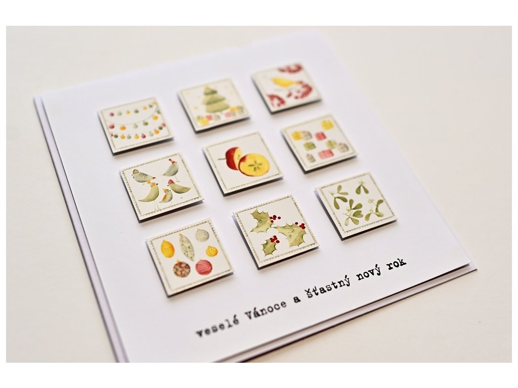 Vánoční přáníčko se známkami z pera papírnictví Mankai paper.