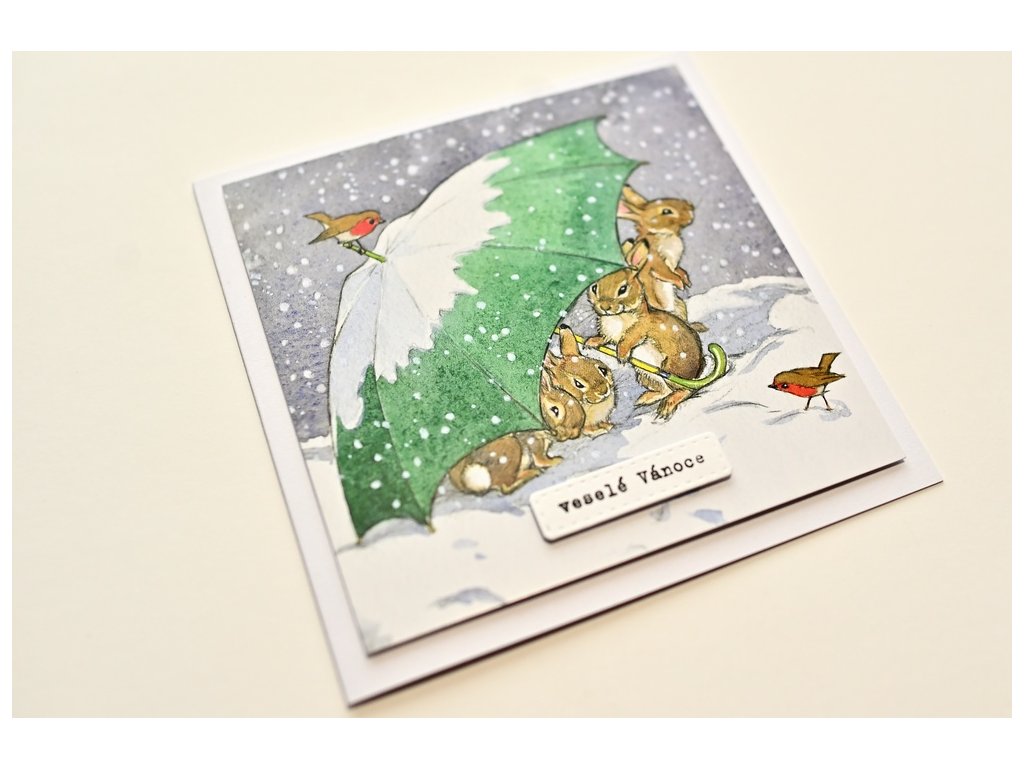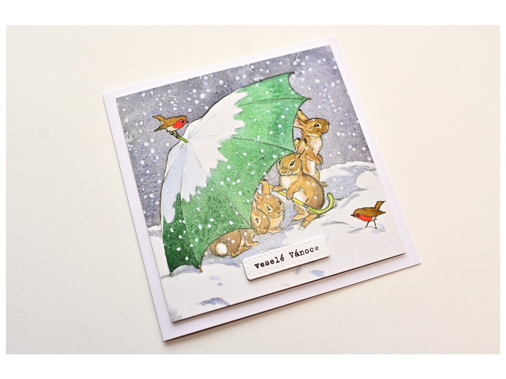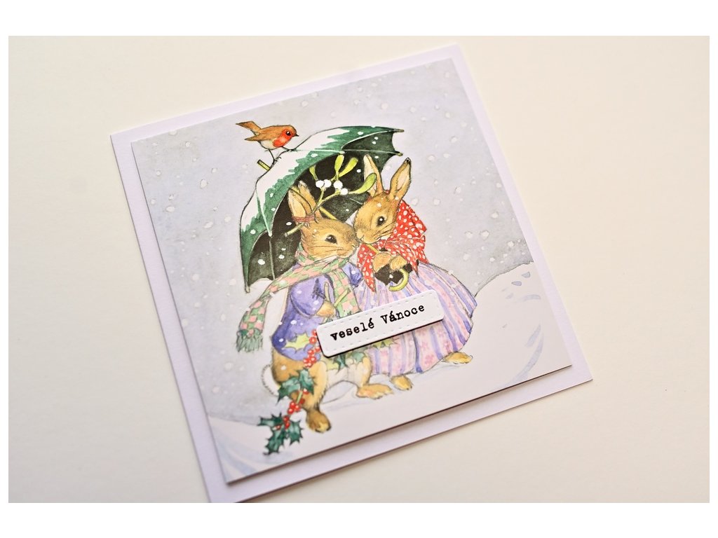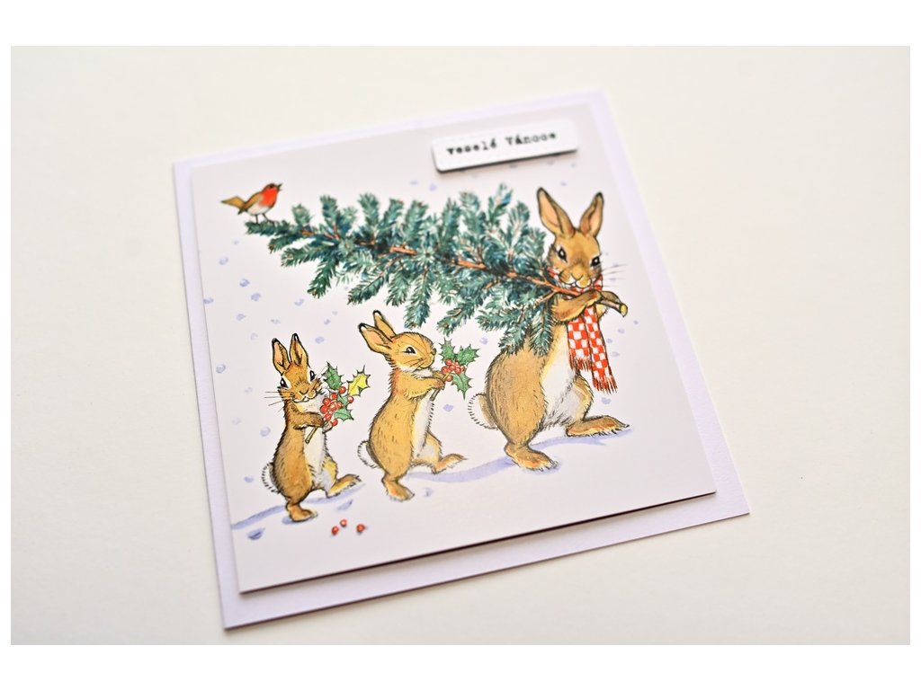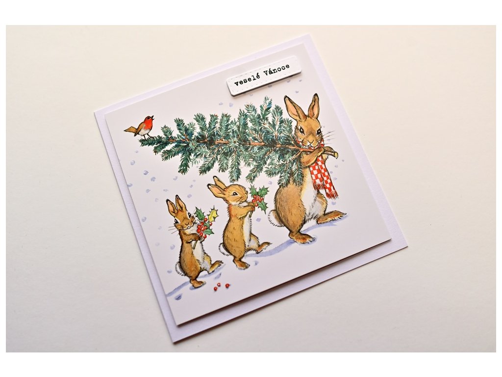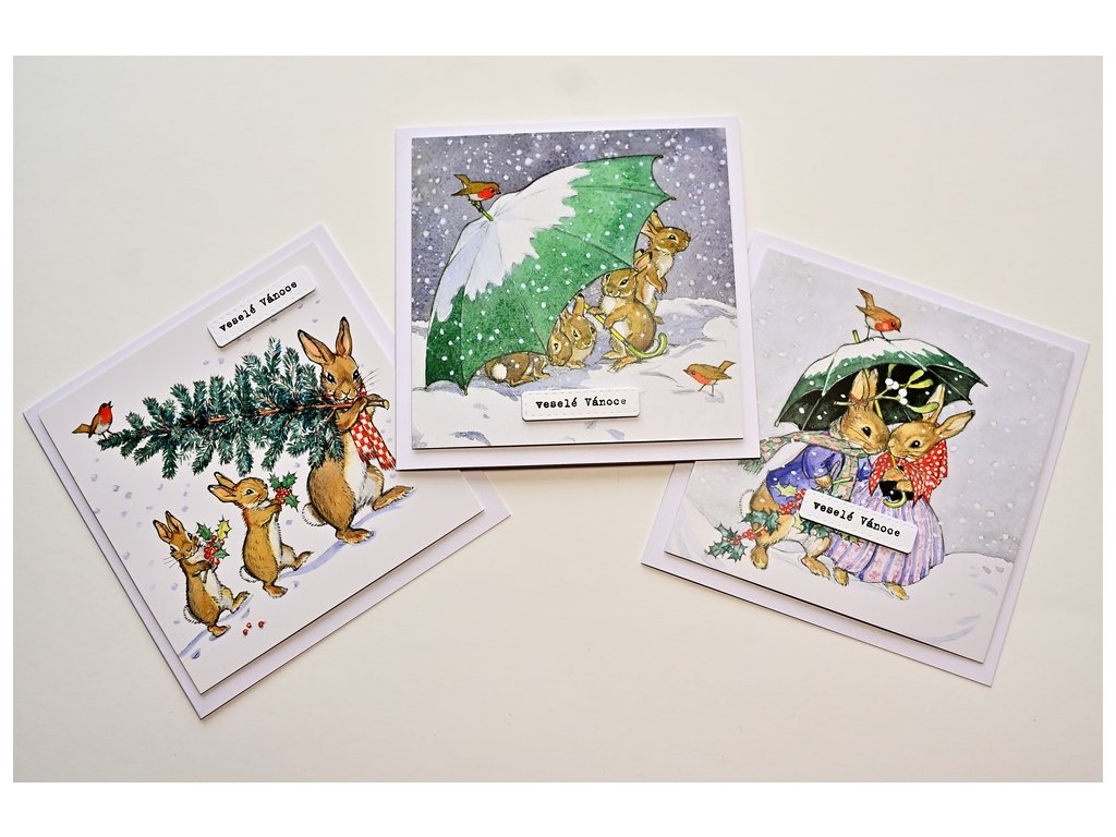 Vánoční přáníčko se zajíčky v zimní přírodě. Tři varianty.