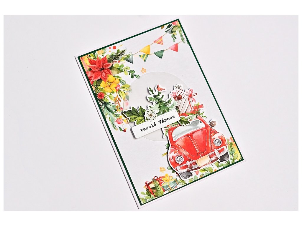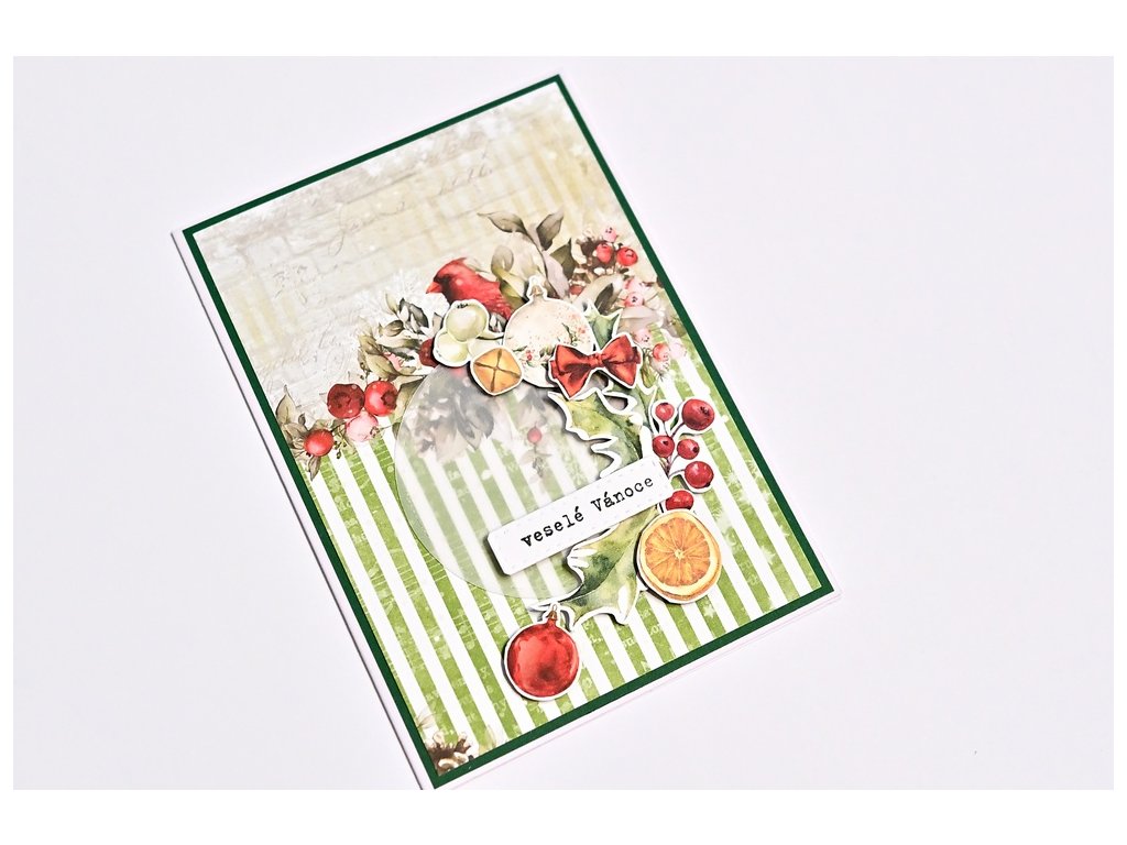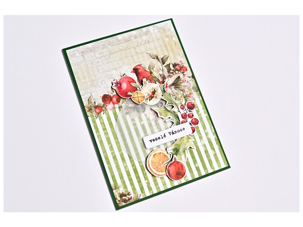 Vánoční přáníčko laděné do zelené, klasické vánoční motivy. Šest variant.